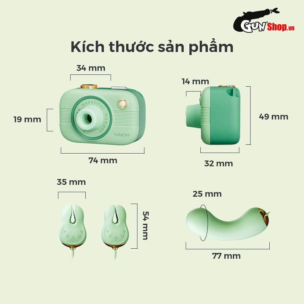Svakom Alberta stands out with its camera-shaped body and removable lens cap, creating a gentle, inviting visual impression. It features an innovative suction function paired with three interchangeable heads, offering versatile pleasure options. Two clamp-shaped attachments are expertly designed for nipple stimulation, while a curvy egg-shaped head provides focused vibrations for intimate areas. All contact points are detachable and easy to clean, ensuring safe and hygienic use every time.
